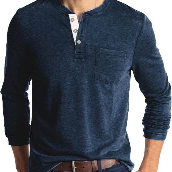 Men’s Henley Long/Short Sleeve T-Shirt Stretch Cotton Casual Pullover Tee Shirts with Pockets